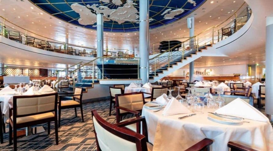 À la carte ravintolat pientä lisämaksua vastaan (pöytävaraus): ”Fine dining” -ravintola The Dining Club kannella 5. Aasialainen Kora-La sekä Surf & Turf Steakhouse pihviravintola kannella 6.