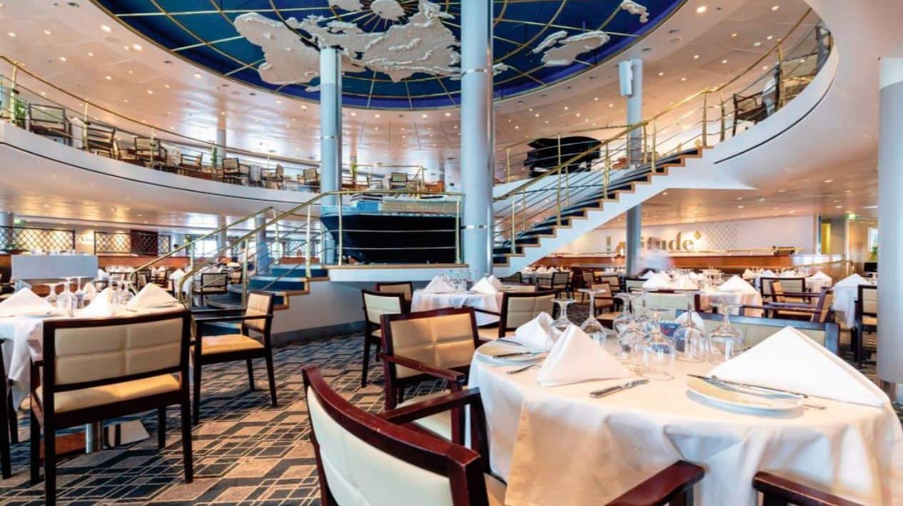 Viihtyisä pääravintola Latitude 53 (kansi 5) tarjoilee perinteisiä ruokia modernilla twistillä. Iltaisin kannella 6 (Latituden yläkerroksessa) palvelevat Italialaisravintola Vista ja Brittiläistyyppinen Piccadilly´s.