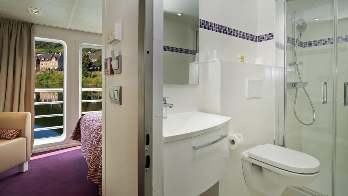 Levähdä laivan kannella ja katsele Moselin sivujoen, Saarin, kauniita metsämaisemia laivan mutkitellessa kohti viimeisen yön satamaa.
