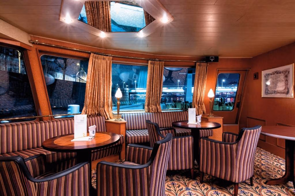 Vedenkorkeus joessa, sulutukset, tuuli ja sää vaikuttavat laivan liikennöintiin ja tästä johtuen muutokset risteilyn aikataulussa ovat mahdollisia. Tarkistathan aikataulun tiedotteista laivan ilmoitustaululta.
