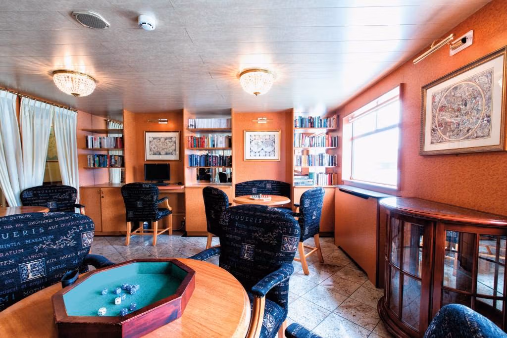 Laivan vastaanotto sekä matkamuistomyymälä sijaitsevat sisääntuloaulassa. Tyylikäs ravintola sekä pieteetillä sisustettu panorama-lounge yhdessä baarin kanssa takaavat matkustajien viihtyvyyden. Laivalla on myös kirjasto sekä sisäuima-allas ja sauna. Aurinkokannelta on mukava sään salliessa katsella matkan etenemistä ja jokivarsien maisemia.