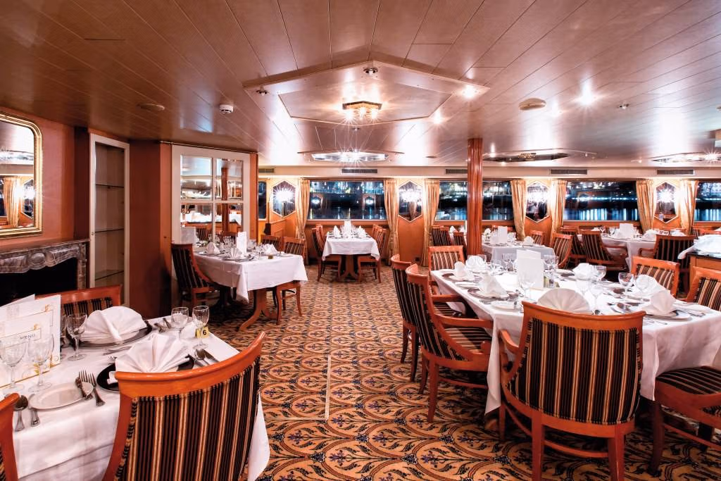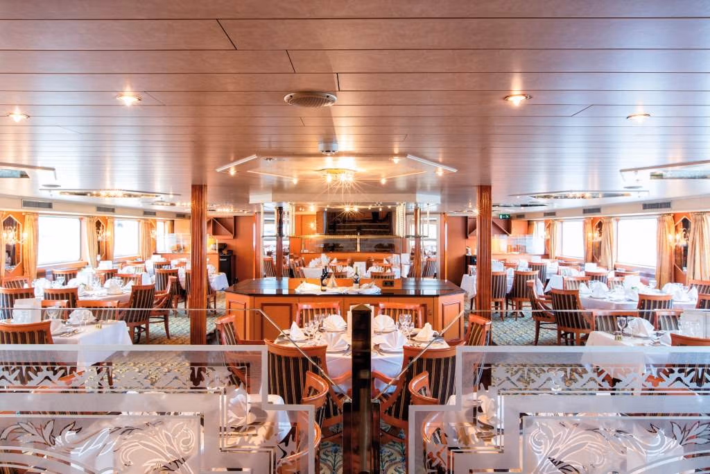 Risteilyn aikana matkaan sisältyy täysihoito sekä ruokajuomat laivalla. Ateriat tarjotaan laivan 1. kannella sijaitsevassa ravintolassa. Laivahenkilökunnan pääpalvelukieli on englanti. HUOM! Erikoisruokavalion saanti laivalla on epävarmaa. Mikäli joudut noudattamaan erikoisruokavaliota, ilmoita siitä mahdollisimman aikaisessa vaiheessa.