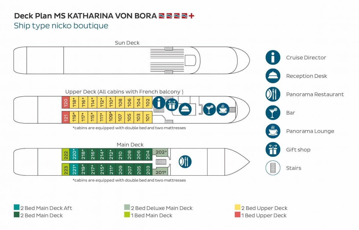 M/S Katharina von Bora tekee risteilyjä pääasiassa Elbe-joella ja Pohjois-Saksassa. Mukavan elegantisti sisustetut hytit, kotoisat yleiset tilat ja ravintola sekä tunnelmallinen baari tekevät matkanteosta nautinnollista. Laivasta, jossa matkustaa korkeintaan 80 risteilyvieraista, huolehtii 22 hengen miehistö.